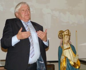 In einem mit viel Humor gewürzten und frei gehaltenen Vortrag gab Dieter Petri einen Überblick über die wechselhafte – und sehr eigene – Geschichte der Pfarrei St. Blasius. Mal lauschte das Publikum gebannt, mal lachte es schallend ob der teils anekdotenhaft vorgetragenen Historie.
