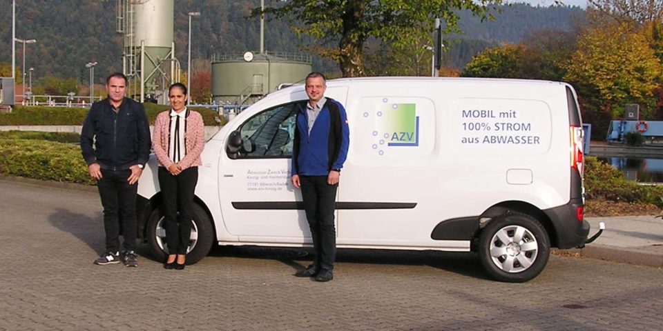 Für sauberes Wasser ist die Kläranlage zuständig. Jetzt fahren Kanalaufseher und Bereitschaftsdienst auch mit sauberem Strom. Von links nach rechts: Kanalaufseher Roberto Landriscina, Verbandsvorsitzende Daniela Paletta, Betriebsleiter Aldrin Mattes. Foto: AZV