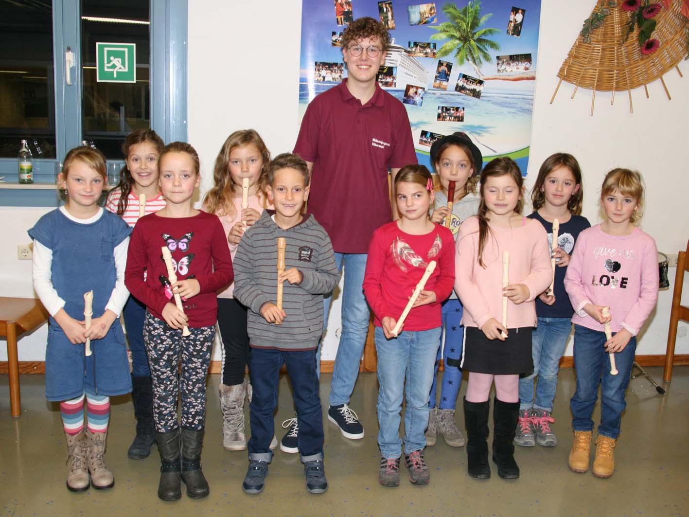 Es gehört zu den Stärken der Nachwuchsarbeit, dass der Musikverein bereits in der Grundschule auf sich aufmerksam macht. Die Kinder werden ermuntert auf dem einfachen Instrument der Blockflöte die ersten musikalischen Schritte zu tun. Jungmusiker Lars Müller begleitet sie dabei. Beim Vorspiel gab Lars behutsam den Takt vor, um die noch zaghaften ersten Gehversuche zu unterstützen.