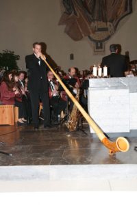 Blasmusik, Orgelspiel und Alphorn gingen beim Konzert eine gelungene Verbindung ein. Dirigent Axel Berger hatte ein vielseitiges Repertoire zusammengestellt, das von Johann Sebastian Bach bis Franz Lehár reichte. Gesamtorchester, Ensembles und Solisten kamen gleichermaßen zur Geltung. Vorsitzender Franz Mäntele und Kooperator Peter Seibt begrüßten die Gäste. Alexander Herde kündigte mit stimmungsvollen Gedanken die Musikstücke an.