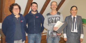 Stolz auf die besondere Leistung: 125 Mal spendete Marcus Moser sein Blut für andere Menschen. Von links: Ute Baur und Florian Lehmann vom DRK, Marcus Moser und Bürgermeisterin Paletta. Foto: Gisela Albrecht