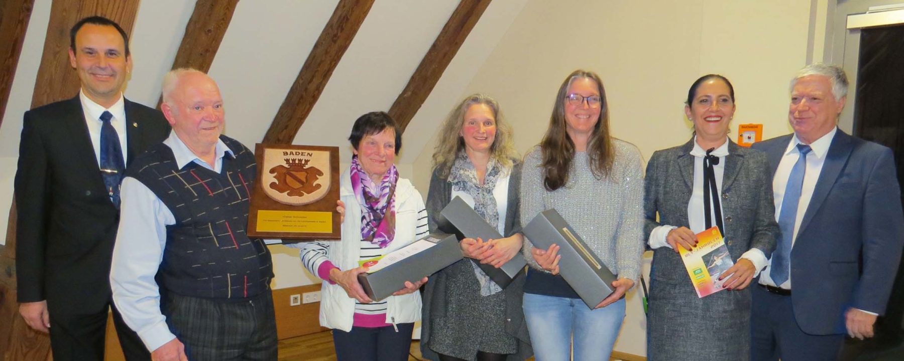 Der Turnverein Biberach hat nicht nur ein aktives Vereinsleben, er ist auch im Gemeinwesen engagiert, berichtete Paletta zur nächsten Gruppierung. Eine besondere Ehrung wurde hier Walter Schmider zuteil: »Er ist das badische Urgestein der Leichtathletik, seit 50 Jahren im Verein und erhält das Badenschild als Auszeichnung«, erklärte Paletta. Erna Antritter konnte sie die DLV-Ehrennadel in Gold mit Urkunde verleihen. Sie ist seit 50 Jahren im Verein und trägt genau solange Verantwortung als Übungsleiterin. Für 40-jährige Mitgliedschaft wurde Ursula Ramsteiner geehrt und für 25 Jahre im Verein Manuela Berger. In Abwesenheit erhielt Maria Bauer eine Ehrung für 25 Jahre sportliche Mitgliedschaft im Turnverein.