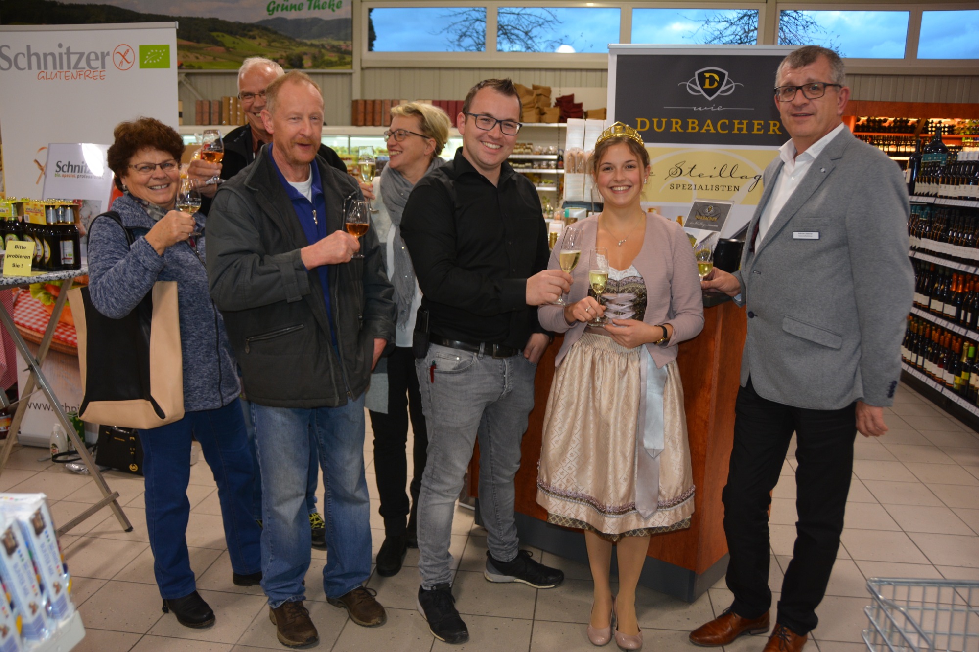 Vor 15 Jahren hat die Raiffeisen Kinzigtal ihren neuen Einkaufsmarkt am Ortseingang von Biberach eröffnet und damit einen wichtigen Schritt in die Zukunft getan. „Wir sind mit dem Markt Biberach mehr als zufrieden“, betonte Raiffeisen-Geschäftsführer Adrian Steiner (rechts). Gemeinsam mit der Durbacher Weinprinzessin Sina Erdrich (von rechts), Marktleiter Martin Isenmann und vielen Kunden konnte er auf die erfolgreiche Geschäftsentwicklung anstoßen. Am Jubiläumswochenende gab es eine ganze Reihe von Aktionen, Verkostungen und Jubiläumsangeboten. Den Erlös einer großen Tombola spendet die Raiffeisen Kinzigtal den drei Biberacher Kindergärten.