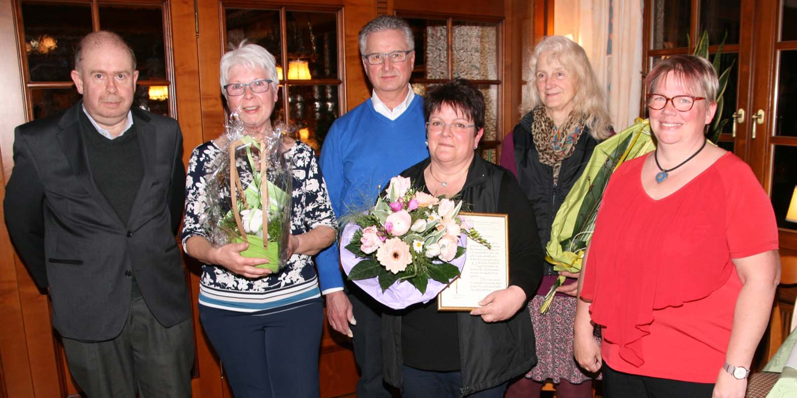 Vorsitzende Agathe Schneider freute sich, einige Mitglieder für ihre jahrzehntelange Mitwirkung auszeichnen zu dürfen. Regina Siefert gehört dem Chor seit 40 Jahren an. Sie wurde bei dieser Gelegenheit zum Ehrenmitglied ernannt. Gleichfalls auf 40 Jahre Mitgliedschaft bringt es Wolfang Gutmann, der sich zudem im Verwaltungsrat einbringt. Und schließlich ist auch schon vier Jahrzehnte Marita Echle im Chor dabei. Sie betätigt sich auch als Schriftführerin. Die Vorsitzende Agathe Schneider ist dem Chor vor 25 Jahren beigetreten. Der stellvertretende Vorsitzende Bernd Gißler dankte ihr für ihre umsichtige und zuverlässige Organisation und Führung der Chor-Gemeinschaft.