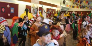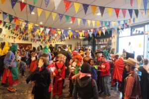 Dass die großen und kleinen Narren im Dorf schon längst vom Fasentvirus infiziert sind, war schon morgens zu erkennen. In der Aula der Grundschule wurden die Narren freudig empfangen. Nach der fröhlichen Feier zogen die Kinder – begleitet von vielen Bibern, Reiherhexen und Bergwerksgeistern – mit viel Radau durch den Ort und erweckten so auch die letzten Narrengeister zum Leben.