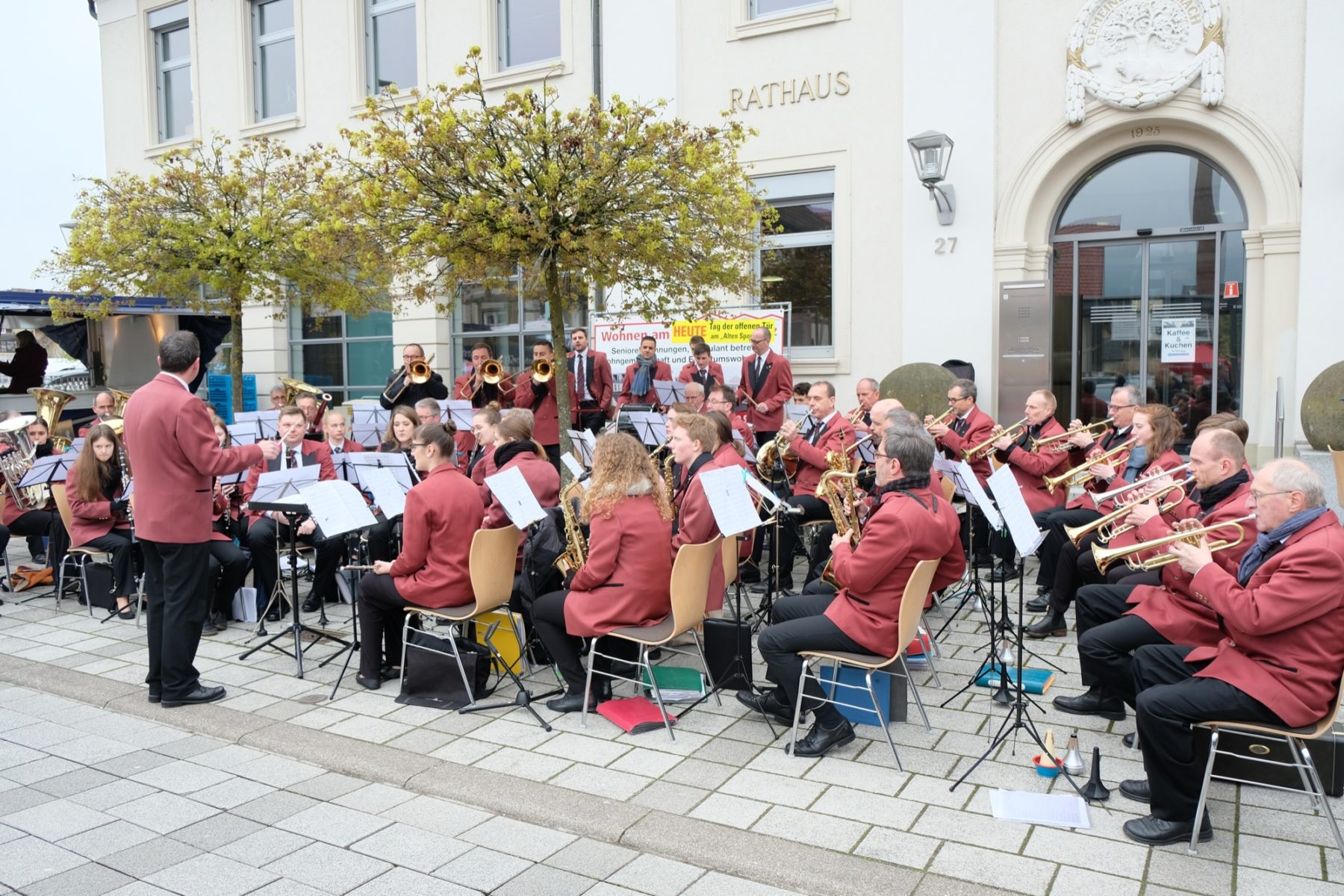 Das Biberacher Blasorchester tat unter der Leitung von Axel Berger und eingemummelt in dicke Schals sein Bestes, um die Sonne zumindest in den Herzen scheinen zu lassen. Spontan spielten die Musiker dem Gemeinderat Gerhard Matt ein Ständchen. Er feierte gestern seinen 70. Geburtstag. Herzlichen Glückwunsch!
