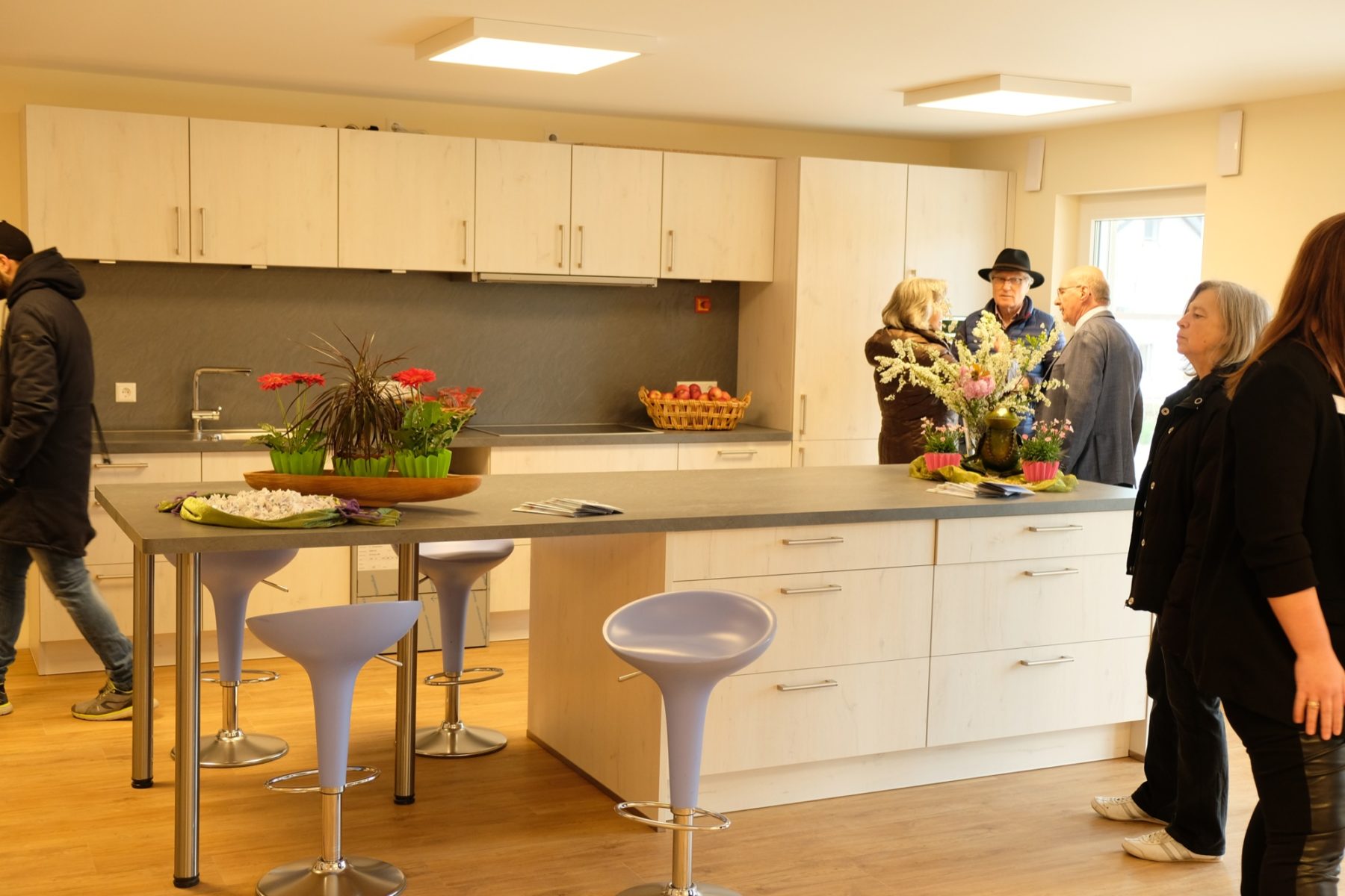 Angeschlossen an den Ostermarkt hatte sich das Nachbarschaftshaus am Alten Sportplatz. Es stand – fast fertiggestellt – für Besucher offen. Zahlreiche Interessenten nutzten die Gelegenheit für einen Blick hinein und Beratungsgespräche. »Gleich morgens waren viele Interessenten da«, freute sich Pflegedienst-Leiterin Agnes Bihrer. Die Interessenten informierten sich vor allem zu organisatorischen Fragen und Kosten. Heimleiter Marco Porta stand ebenfalls für Gespräche zur Verfügung. Er führte zum Beispiel durch die Senioren-WG, erläuterte das Konzept und konnte zudem ein mit einer Musterausstattung eingerichtetes Zimmer präsentieren. Der Verein »Hilfe von Haus zu Haus« zieht mit ein ins Nachbarschaftshaus, was der Betreuung der Bewohner zugute kommt.