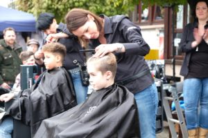 Nach einer kleinen Pause wurde dann auf dem Laufsteg frisiert. Die Männer-Haarmoden-Show begann mit lautem Geknatter. Warum wurde schnell klar. Egal ob man Harley oder Moped fährt: Ein Helm ist Pflicht, und der kann schon mal die Frisur zerstören. Wie man sie mit wenigen Handgriffen direkt wieder flott bekommt, wurde folglich gezeigt. Mehr als 30 Modelle schlossen sich an. In allen Altersklassen wurden im Minutentakt typgerecht Lockenköpfe gebändigt, Undercuts geschnitten oder Struktur im Haar geschaffen. Da Bärte nach wie vor ein Trendthema sind, wurde auch die Pflege der Gesichtsbehaarung thematisiert. Ein Gebiet, auf dem sich »Senior« Wilhelm Schmider bestens auskennt, wie von seiner Tochter und Inhaberin des »Figaro« Evi Lehmann zu erfahren war.