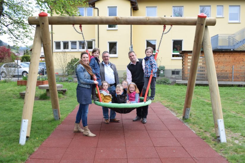 Die »Glückauf Clara Stiftung« konnte Mitte April eine 5.000-Euro-Spende an den Katholischen Kindergarten St. Blasius Biberach für den Bau einer Vogelnestschaukel überreichen.
