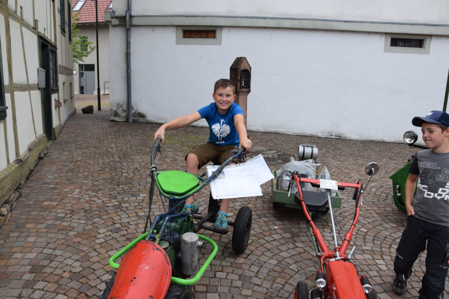 Im Mittelpunkt standen jedoch die zahlreichen historischen Unimogs und Schlepper sowie deren Besitzer, die gerne mit Informationen zur Stelle waren. Gerade für die Jüngsten waren die zum Teil imposanten Landmaschinen ein wahrhaftes Erlebnis. So verwunderte es nicht, dass viele Kinder begeistert auf dem Fahrersitz Platz nahmen, um die urigen Gefährte aus der Nähe zu betrachten. In der Szene wird es zwar nicht gerne gesehen, dass fremde Personen auf die Maschinen klettern, aber wer kann schon strahlenden Kinderaugen eine freundlich vorgetragene Bitte abschlagen?