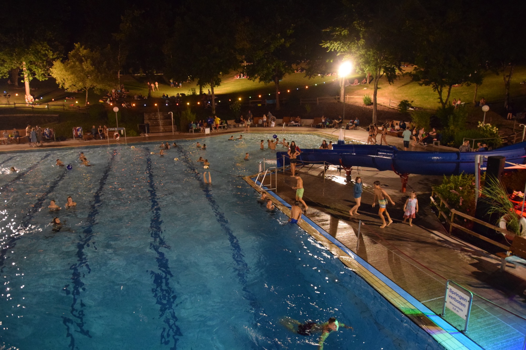 Ein Mix aus warmem Wasser, lauer Luft und kühlen Cocktails: Nach einigen verregneten Jahren war das Flutlichtbaden in diesem Jahr wieder ein voller Erfolg.