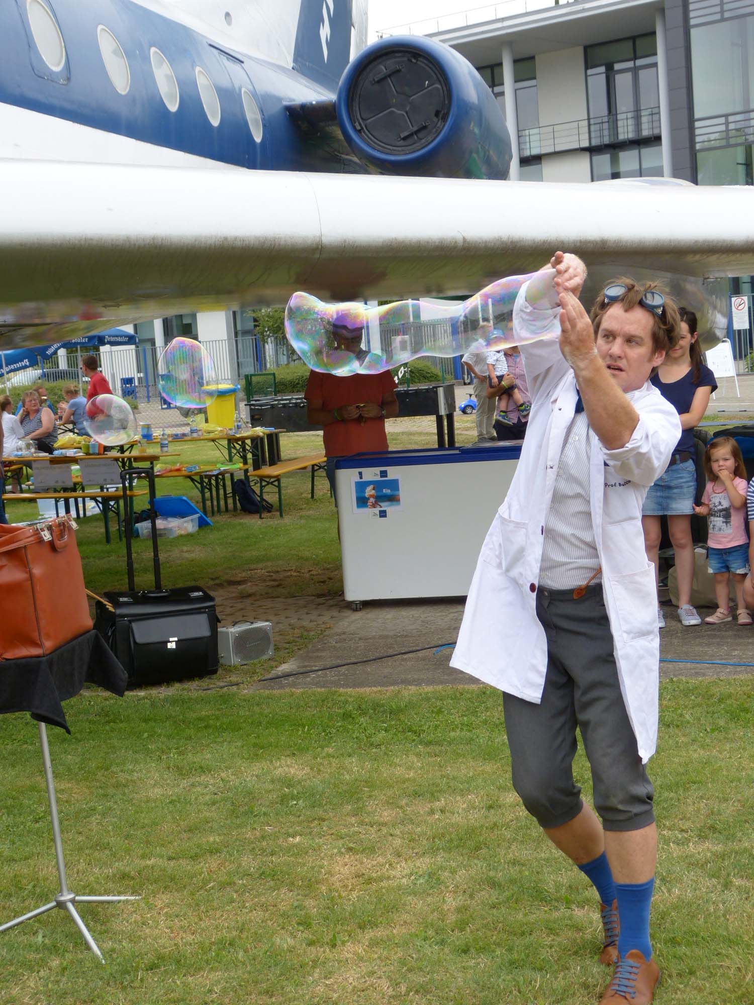 Brachte Klein und Groß zum Lachen: »Professor Bubbles« mit seiner komischen Seifenblasenkunst.
