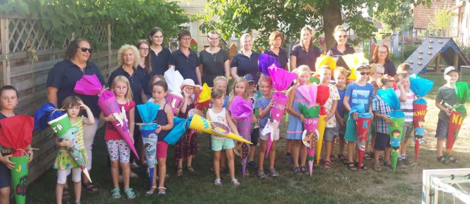Weil das Kindergartenjahr erst am 9. August endete, konnten die Schulanfänger nach den Feierlichkeiten noch ein paar letzte Tage im Kindergarten erleben.