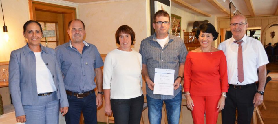 Die Firma Bau-Volk hatte alle Mitarbeiter des Unternehmens gemeinsam mit ihren Ehefrauen und Freundinnen eingeladen, um das 30-jährige Arbeitsjubiläum von Andreas Hoog zu feiern. Bürgermeisterin Daniela Paletta überbrachte die Glückwünsche der Gemeinde und die Ehrenurkunde der Handwerkskammer Freiburg.