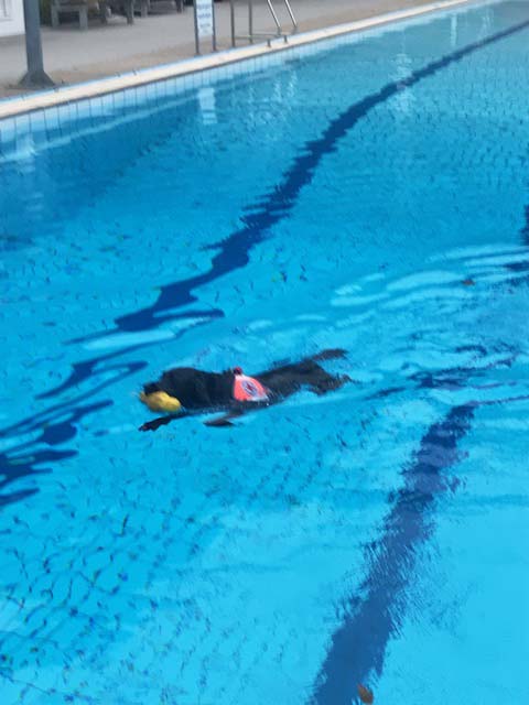 Die Gemeinde Biberach hat sich sehr gefreut, dass sie den Vierbeinern nicht nur diesen Spaß gönnen, sondern auch einen anderen Ort der Menschenrettung zum Training anbieten konnte, um sich für den Ernstfall vorzubereiten. Da es durchaus passieren kann, dass eine Person in einem Gewässer vermisst wird, stellte die Gemeinde gerne das Waldterrassenbad zur Verfügung.