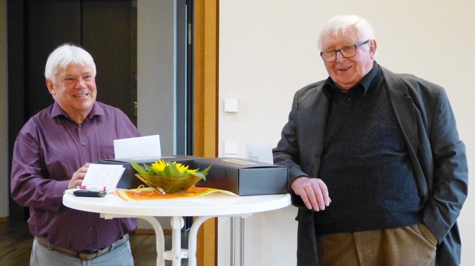 Darüber hinaus würdigte sie Siegfried Schillis ehrenamtliches Engagement in der Gemeinde. Sei es beispielsweise bei der Mitgestaltung des Maienbaums oder betreffs der Idee, den Rietsche-Kamin im Advent in eine Riesenkerze zu verwandeln. Seine Freude brachte der Hobbykünstler im Anschluss zum Ausdruck, indem er das Volkslied „Freut Euch des Lebens“ auf seiner Mundharmonika intonierte.
