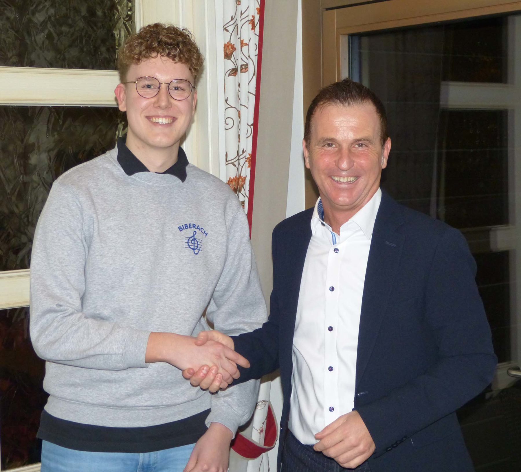 Zu später Stunde schließlich schaffte es ein Überraschungsgast in den Versammlungssaal: Armin Klausmann, Präsident des Blasmusikverbandes Kinzigtal, hatte kurzfristig alles daran gesetzt, um – aus Freudenstadt kommend – sein Erscheinen zu ermöglichen. Mit dem Ziel eine besondere Ehrung vorzunehmen bat er den 17-jährigen Lars Müller zu sich. Denn der Jungmusiker hat an seiner Trompete das überaus schwierige Leistungsabzeichen in Gold abgeschlossen – und das obendrein mit Bravour.
