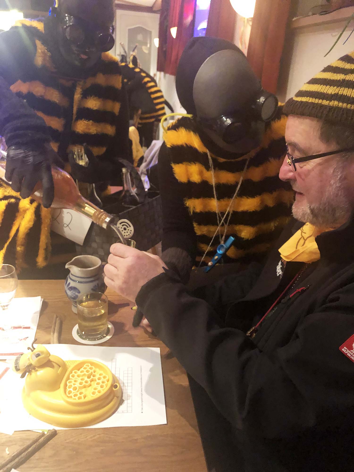 Die »fleißigen Bienen« hatten ein ausführliches Bienenquiz vorbereitet und die Gäste durch einen »Bienentanz« animiert mitzutanzen. Zum Schluss wurde jeweils eine »Bienenkönigin« nominiert.