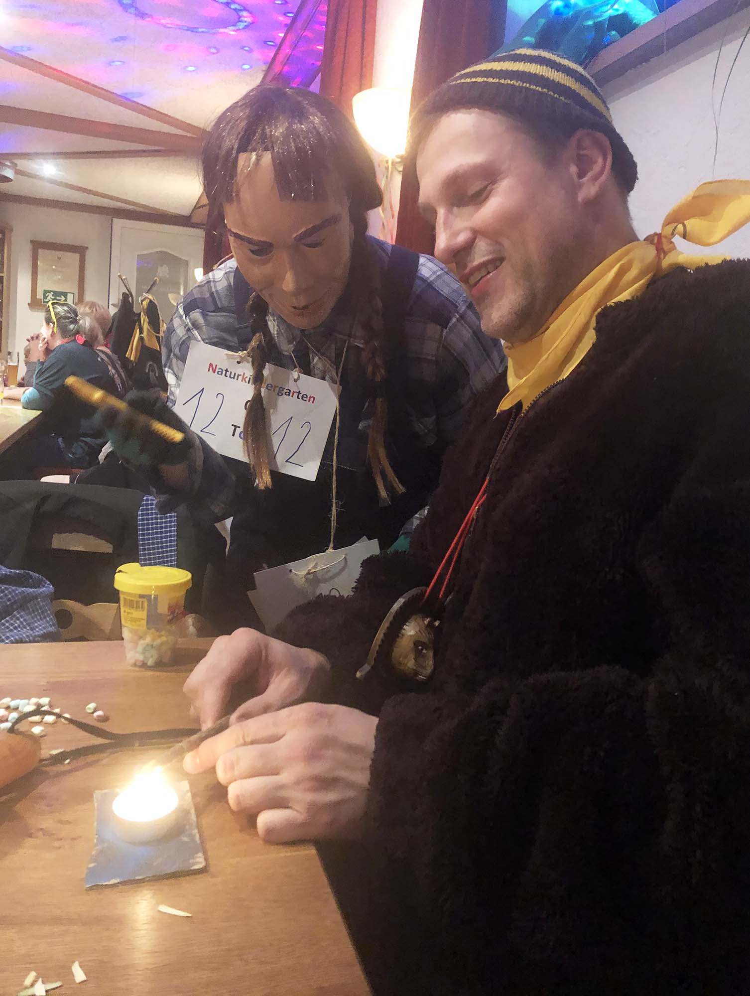 Eine Überraschung gab es bei der Preisverleihung. Beide Paarmasken erhielten exakt die gleiche Stimmenzahl. Der erste Platz wurde folglich gleich zwei Mal vergeben. Das gab es noch nie. Hinter den »Glückskäfer us Bibre« steckten Erika Braun und Elanor Geiger, hinter den »Naturkindergarten on Tour« Sabrina Wiedmer und Manfred Krauß.