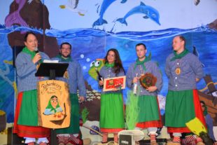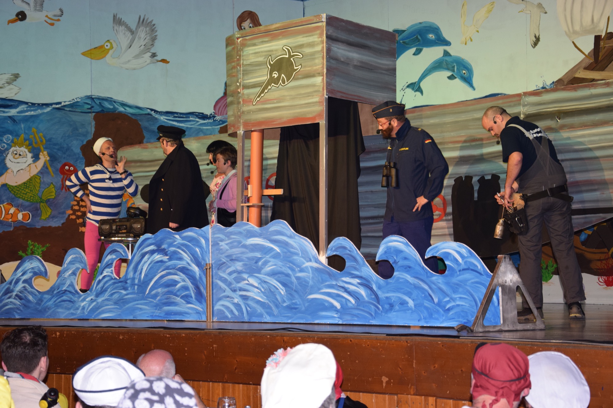 »Schiff ahoi« hieß es dann bei der ersten Nummer des Tages. Die »Kinzigtaucher« vom »schuldenfreien Abwasserzweckverband« schwammen gegen den Strom und fischten allerlei Schlüpfriges aus der Kinzig – so auch die strenge Toilettenregel von Grundchulrektorin Alexandra Maginot – die dann auch Bürgermeisterin Daniela Paletta im Narrensaal durchsetzen sollte.