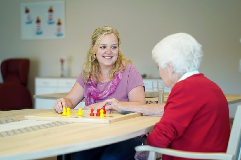 Nach zwölf Wochen Corona-bedingter Zwangspause können insgesamt 18 Senioren der Pflegegrade 0 bis 5 tagsüber eine Rundumversorgung sowie einen Ort der Gesellschaft und des Austauschs in Anspruch nehmen. Das Angebot richtet sich auch an nicht-pflegebedürftige Senioren, die den Tag nicht gerne allein verbringen möchten. Dort wird gemeinsam gegessen, geredet, gesungen, gebastelt, spazieren gegangen und vieles mehr. Damit jeder genau das bekommt, was er braucht, gibt es neben dem großen Gruppenraum einen separaten Bereich mit Ruhesesseln für den Mittagsschlaf und einen zweiten Raum, in dem gewerkelt werden kann. »Alle Beschäftigungsangebote sind stets freiwillig, wer Lust hat, macht mit«, so Shirin Strosack, Leiterin der Tagespflege. Ziel der Tagesbetreuung ist es auch, pflegende Angehörige zu entlasten oder ihnen zu ermöglichen, eine berufliche Tätigkeit auszuüben.