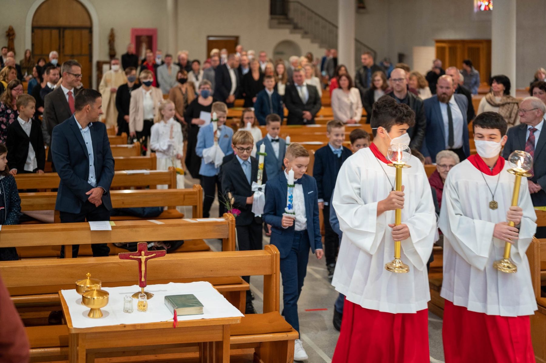 Einzug in die St.-Blasius-Kirche. 21 Kinder feierten am Samstag in zwei Gottesdiensten das Fest der heiligen Erstkommunion.