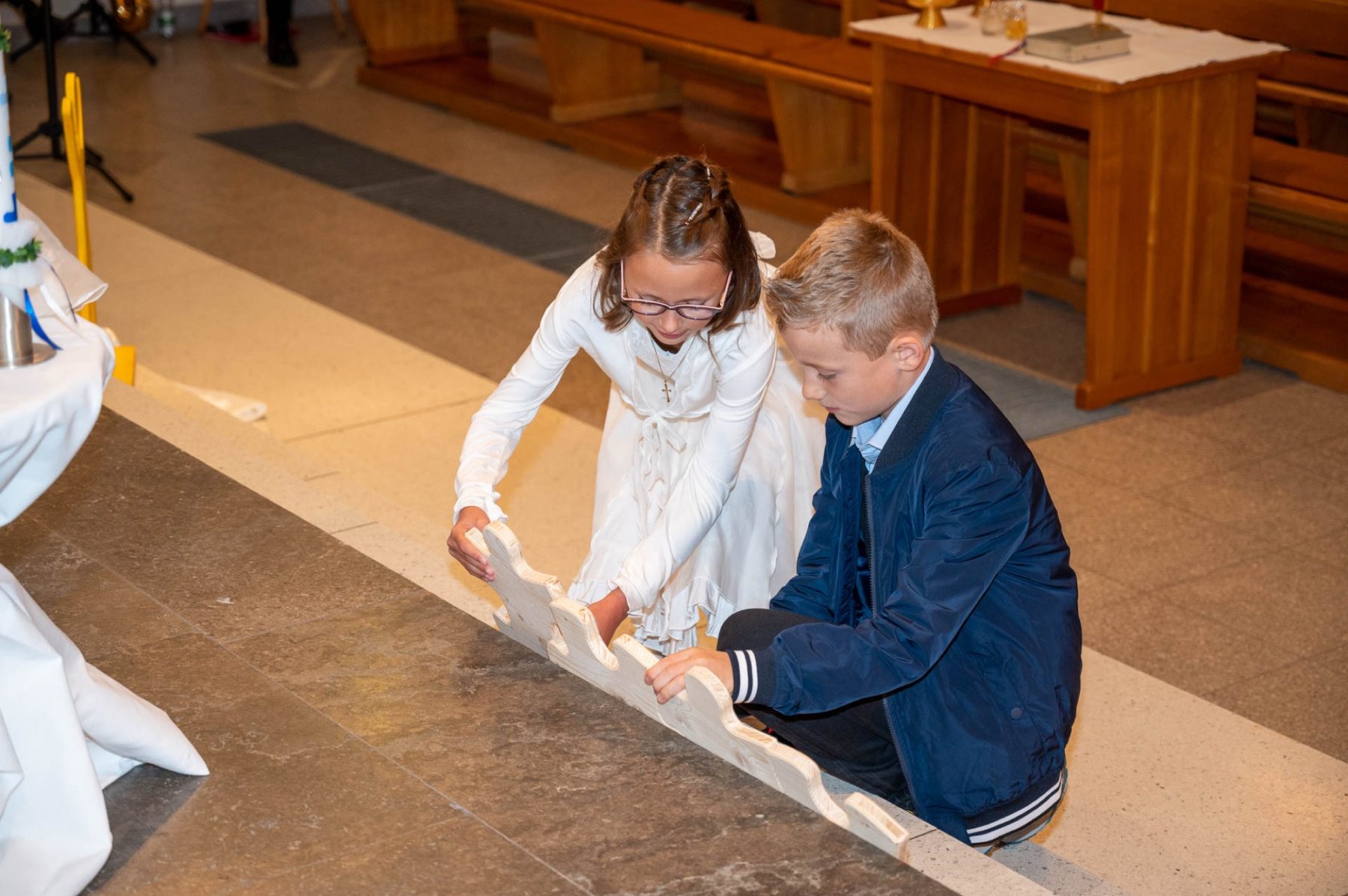 Besonders waren auch die Umstände der diesjährigen Erstkommunion. Nicht in den Wochen nach Ostern wurde die Erstkommunion gefeiert, sondern aufgrund der weltweiten Covid-19-Epidemie erst im Oktober. Eine ganz besondere Herausforderung also; sowohl für die Vorbereitung, als auch für die Durchführung der Feier. Trotz Verordnungen und Einschränkungen des Gesundheitsamtes wurde ein passendes Hygienekonzept umgesetzt, das es erlaubte, die Erstkommunion in einem würdigen Rahmen zu feiern.