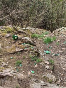 Der Schwarzwaldverein Biberach betreut unter anderem die von der Ortsgruppe erbaute Siegfried-Liebert-Hütte auf dem Hangerer Stein. In und bei der Wanderhütte wurde in den vergangenen Tagen wohl kräftig gefeiert. Die Hinterlassenschaften in Form von Papier, Bierdosen und Glasflaschen wurden dann in und um der Hütte verteilt und einfach liegen gelassen. Viele der Glasflaschen wurden an dem Felsen des Hangerer Steins zerschmettert.