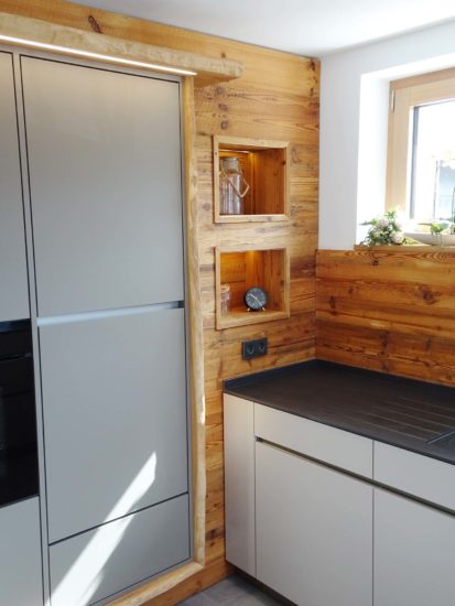 Die eigens entwickelte Möbelserie »Trendline« der Firma Michael Eble, »Die Küchen- & Möbelwerkstatt«, erinnert durch eingebaute Holzakzente an Wohlfühlküchen mit klarem Design in handwerklicher Handschrift.