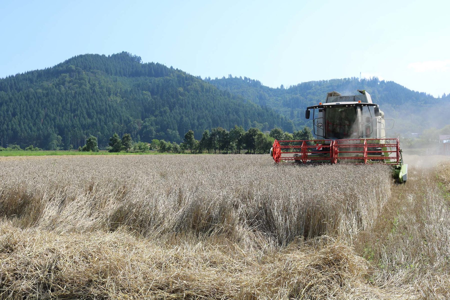 Regional erzeugtes, ohne Pflanzenschutzmittel angebautes Getreide ist der Hauptbestandteil des kernigen Naturpark-Brotes, das seit 2020 das Angebot heimischer Lebensmittel erweitert. Jetzt wurden Dinkel und Weizen geerntet – unter anderem bei Landwirt Robert Schwendemann in Fröschbach.