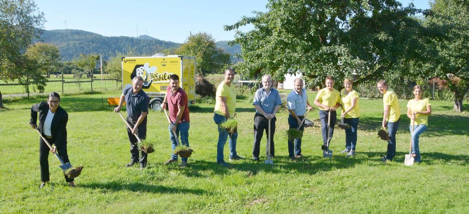 Nach der Segnung des Bee-Mobils Anfang August konnte nun der nächste große Schritt getan werden: Der erste Spatensicht für »Martina’s Bienengarten«. Im Ortsteil Bruch erhält die Gemeinde Biberach eine naturpädagogische Einrichtung, in der Kindergartenkinder und Schulklassen, Gruppen und Vereine die Welt der Bienen und der Imkerei sowie aktiven Naturschutz erleben können.
