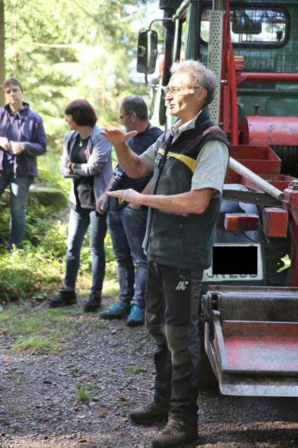 Dort wartete der Oberharmersbacher Förster Hans Lehmann auf die Gäste. Nach einer kurzen egrüßung erhielten die Teilnehmer der Waldfahrt vielfältige Informationen zu Themen rund um den Forst: Klimawandel, Baumsterben, Borkenkäfer-Befall, nachhaltige Waldwirtschaft und natürlich auch Sagen und Mythen rund um die »Heidenkirche«.
