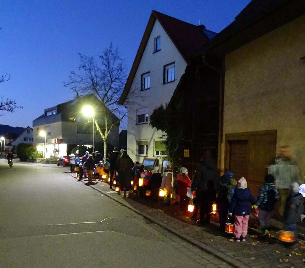 Die Kinder des Kindergartens »St. Blasius« in Biberach trafen sich am Dienstagabend bei Einbruch der Dunkelheit zur gemeinsamen Martinsfeier. Da coronabedingt der große Martinsumzug der katholischen Kirchengemeinde auch 2021 ausfiel, feierten die Kinder und Erzieherinnen im kleinen Rahmen.
