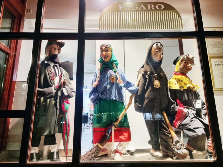 Der Figaro hat die weltbekannten Traditions-Narrenfiguren im Schaufenster ausgestellt, damit auch die Jungen und die Neubürger nicht vergessen, wie die Narren von Biberach und Prinzbach aussehen.