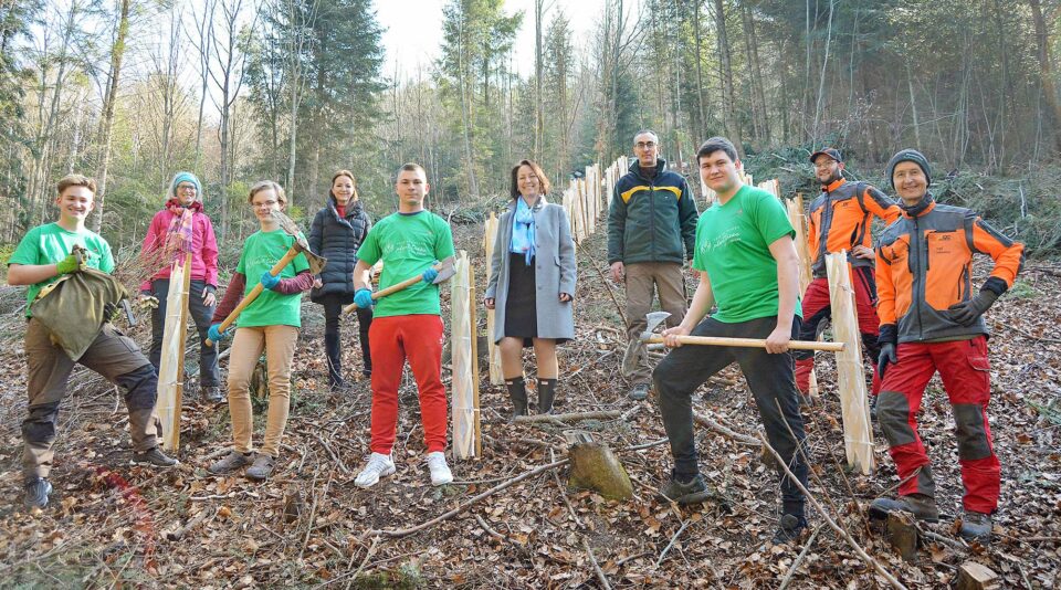 In Zusammenarbeit mit dem Landschaftserhaltungsverband Ortenau e. V., dem Forstrevierleiter für den Gemeindewald Biberach, Christoph Müller, und dem Forstservice Schnaitter forsten die Karl Knauer KG Anfang März eine rund 1.000 Quadratmeter große Brachfläche in Biberach/Baden wieder auf. Bei dieser Aktion wurden mit der Unterstützung von vier Karl Knauer-Auszubildenden insgesamt 250 Traubeneichen und 50 Winterlinden gepflanzt, um eine ehemalige Brandfläche zu rekultivieren.