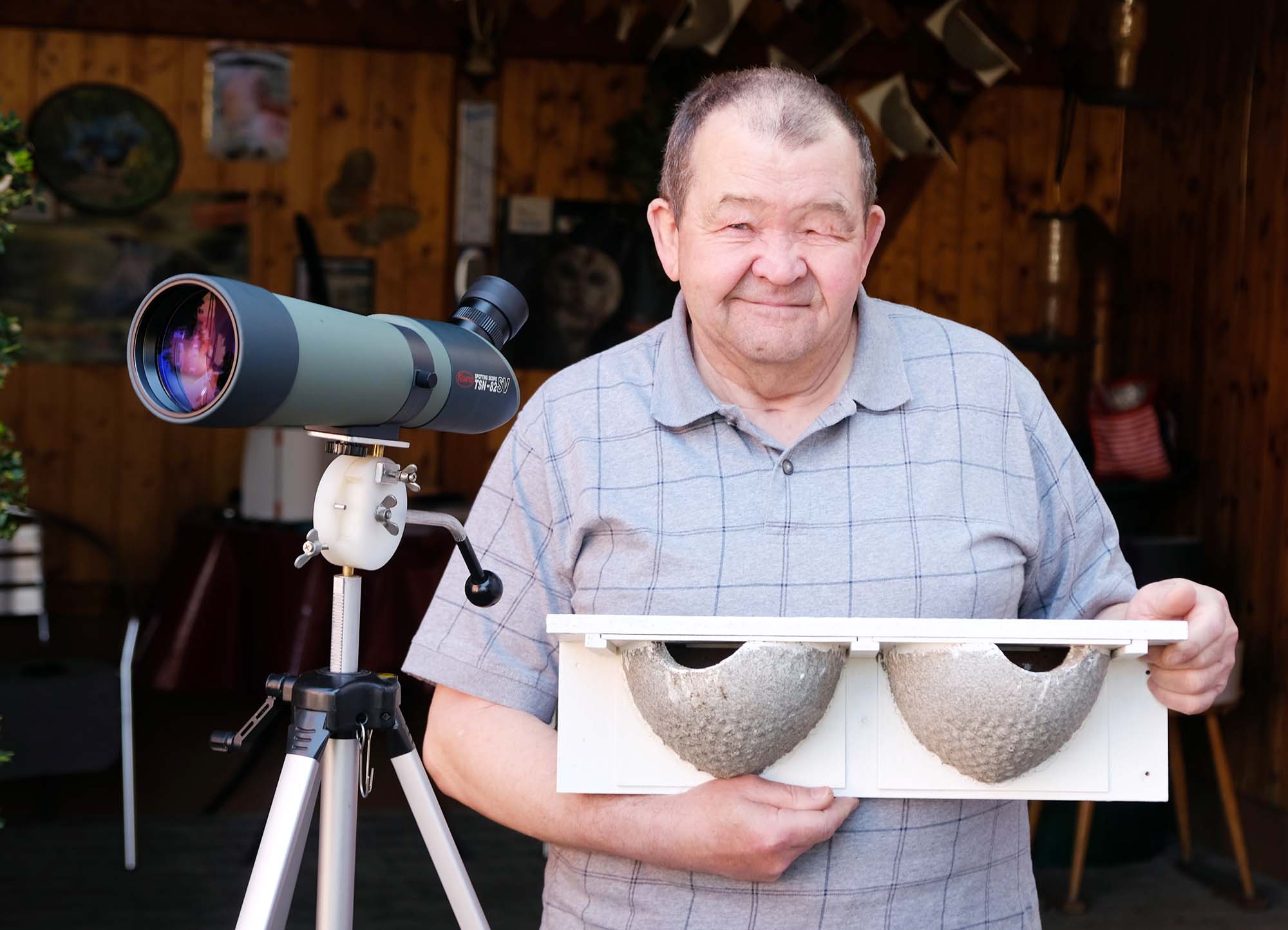 Die meisten Menschen im Harmersbachtal kennen Franz Trautwein so: mit Spektiv, Stativ und Fotoapparat auf seinem Fahrrad unterwegs in der Natur. Oft fährt er von seinem Haus in Biberach erst einmal Richtung Prinzbach, um nach dem Waldkauz zu sehen. Immer im gebührenden Abstand bleibend, um die Tiere nicht zu stören. Mit seinem Spektiv, 60-fache Vergrößerung, ist das problemlos möglich.