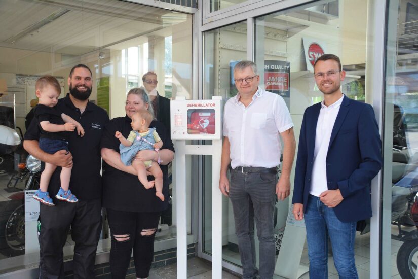 Uwe Heimburger ist der Vater und Schwiegervater von Saskia und Mike Joggerst, die im vergangenen Jahr das Autohaus Holzenthaler übernommen haben. Aus seiner Erfahrung als Sanitäter weiß Uwe Heimburger, wie wichtig ein solches Gerät im Notfall ist. Die Investition in Höhe von 1.500 Euro hat er aus eigener Tasche bezahlt.
