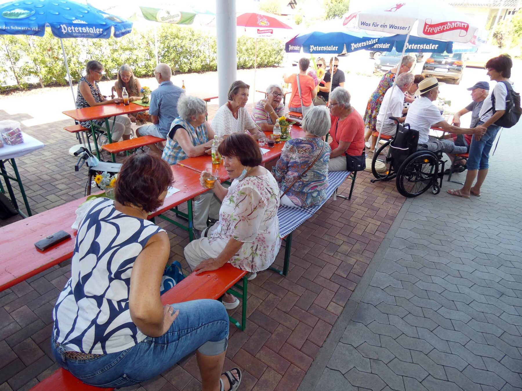 Doch wo Schatten, da auch Licht: Auch am Ende des Tages hielten sich rund 50 das Vereinsjubiläum feiernde Menschen beim Nachbarschaftshaus auf – beim gemütlichen Hock mit Bewirtung: »Von Beginn an herrschte ein ständiges Kommen und Gehen, den ganzen Tag über waren wir sehr gut besucht, auch viele Kunden waren da«, freute sich Andrea Mäntele, »dass dieser Tag so gut angenommen worden ist, freut mich für den Vorstand und für unsere derzeit 50 HelferInnen sehr.«