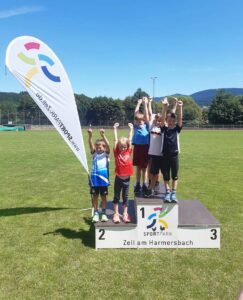 Tim Ramsteiner (M13) konnte noch einen draufsetzen: Er wurde über die 75-m-Distanz Drittplatzierter mit 11,68 s, erreichte den zweiten Platz im Speerwurf mit 19,54 Meter und wurde im 800-m-Lauf mit einer Zeit von 3:04 min. sogar Kreismeister. Mit einem Wert von 3,66 Meter erzielte Ramsteiner auch im Weitsprung ein gutes Ergebnis.
