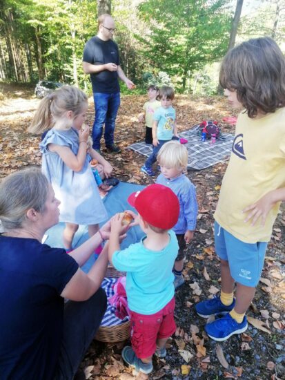 Bei einer angeleiteten Phantasiereise, bei der sich die Kinder passend zur Umgebung als Baum im Wald erleben durften, wurde das Gefühl des »Fest verwurzelt Seins« angesprochen verbunden mit dem Wunsch sich zugehörig zur Gemeinschaft und verbunden mit Gott zu fühlen. Zum Ausklang wurde ein irisches Segenslied angestimmt. Anschließend machten sich alle großen und kleinen Besucher wieder auf den Heimweg.
