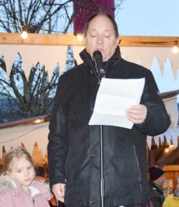Am Eröffnungssonntag konnten die Besucher bereits ab 13 Uhr über den kleinen romantischen Weihnachtsmarkt schlendern. Die offizielle Eröffnung startete pünktlich um 16.30 Uhr und wurde von Alfons Büdel mit dem Läuten der Rathausglocke angekündigt. Bürgermeister-Stellvertreter Hans-Peter Fautz begrüßte die zahlreichen Besucher und Marktbeschicker. Ein besonderer Dank ging dabei an Marktmeisterin Katja Knäble-Rösch, die den Weihnachtsmarkt wieder bestens organisiert hat. Auch den Bauhofmitarbeitern und den vielzähligen Helfern auf und hinter der Bühne galten lobende Worte.