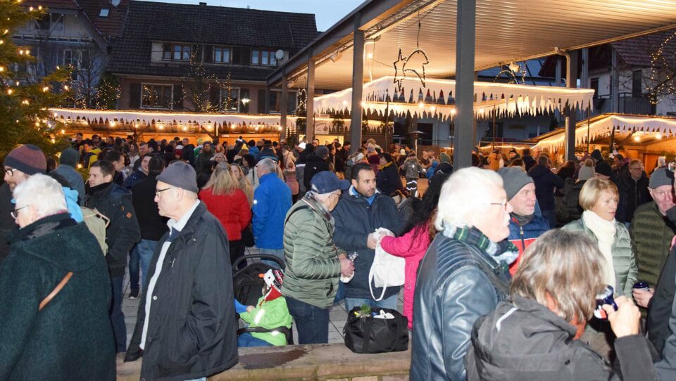 Nach zweijähriger Corona-Pause öffnete der Weihnachtsmarkt am Sonntag erstmals wieder seine Pforten und lockte dabei zahlreiche Besucher aus Nah und Fern an. Die Marktstände waren dicht umlagert. Von handgefertigten Holzarbeiten über winterliche Strickwaren bis hin zu kreativer Weihnachtsdeko spannte sich das bunte Sortiment. Auch für das leibliche Wohl war bestens gesorgt. An den zahlreichen Verzehrständen bildeten sich teilweise lange Schlangen.