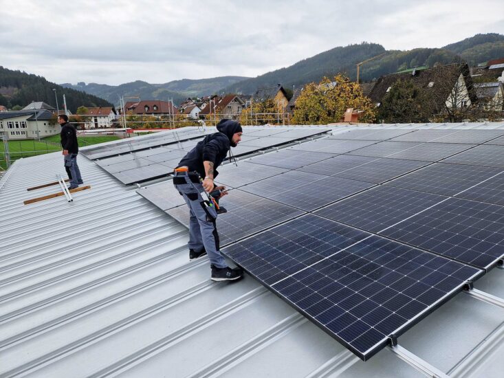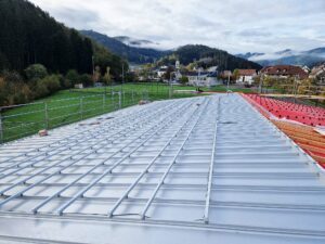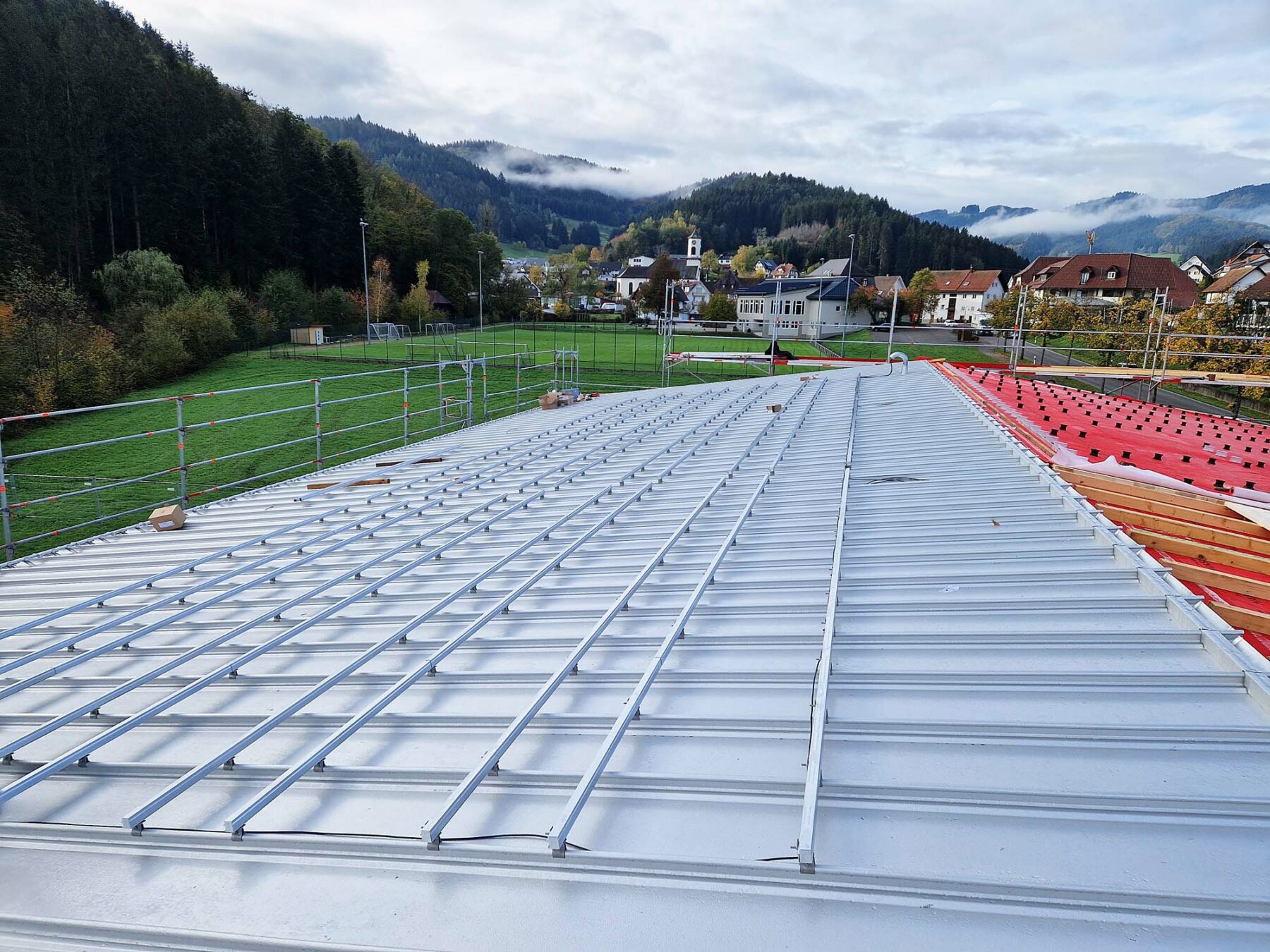 Eine Besonderheit in Hofstetten ist, dass das Gebäude mit einem Blechdach mit Stehfalz eingedeckt ist. Für den Aufbau der Solarmodule mussten deshalb besondere Halterungen verwendet werden.