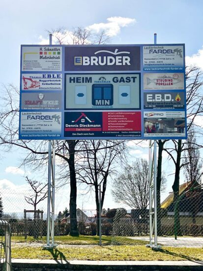 Durch die Unterstützung von neun Sponsoren konnte der FVB sich zum Beginn der Rückrunde den Traum einer eigenen digitalen Anzeigetafel erfüllen. Bereits zum Heimspiel gegen den FV Ettenheim erfreuten sich die Spieler, Funktionäre, Zuschauer und Fans über den neuen Hingucker auf dem FVB-Sportgelände.