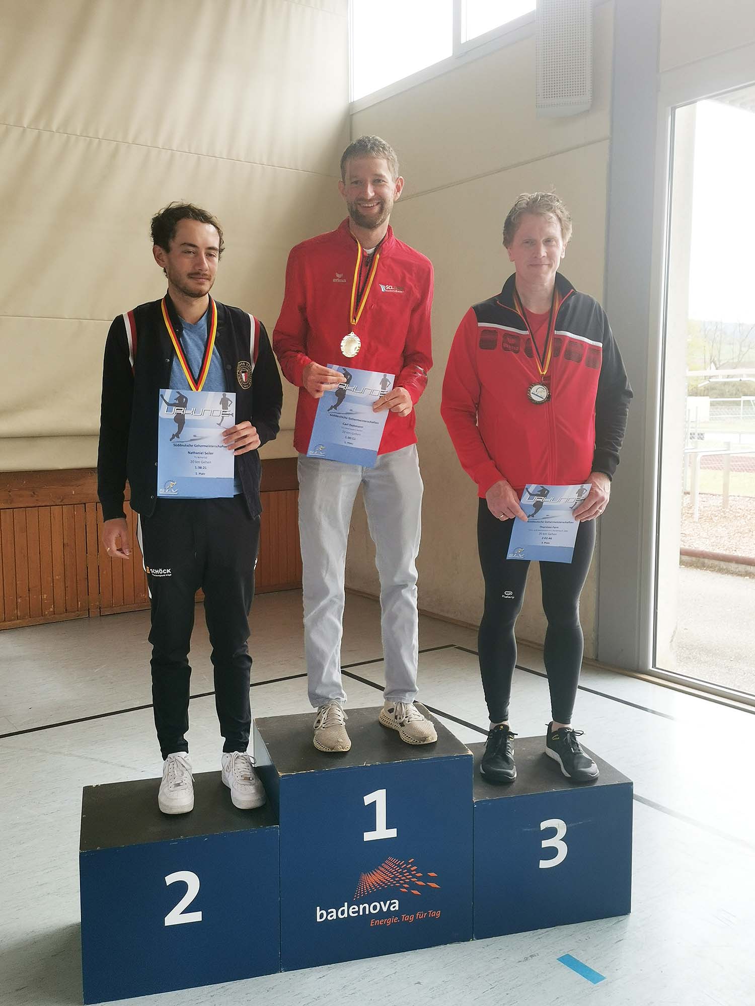Die drei Schnellsten über 20 Kilometer bei den Biberacher Straßengehermeisterschaften heißen (von links nach rechts) Nathaniel Seiler, Carl Dohmann und Thorsten Fern.