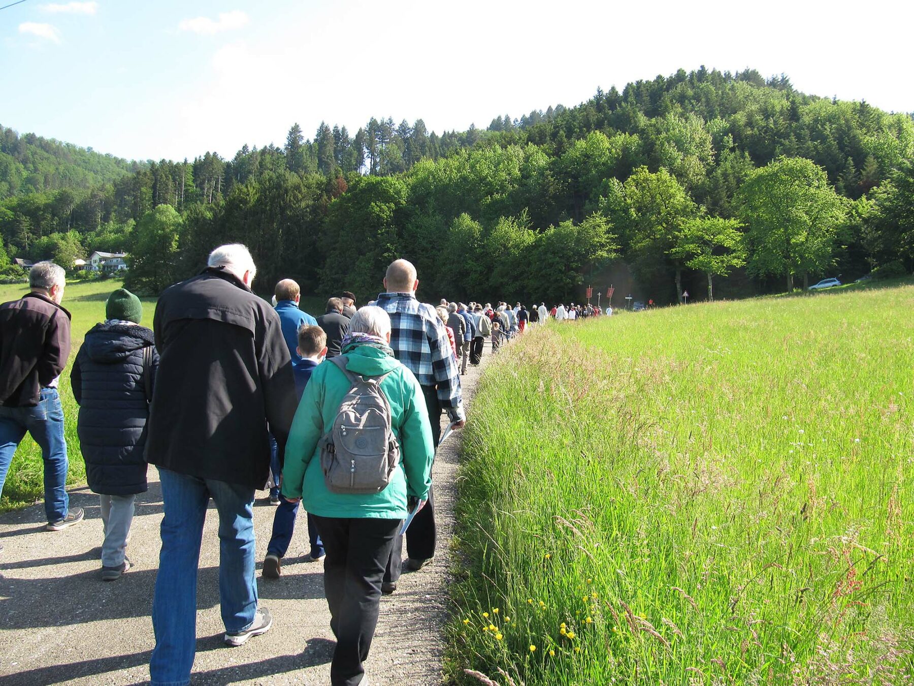 Dem Zug voraus gingen die Ministranten mit Kreuz und Fahnen. Es folgten die Geistlichkeit, der Pfarrgemeinderat der Seelsorgeeinheit, der Biberacher Kirchenchor und die Gläubigen aus Biberach und der Seelsorgeeinheit. Auf dem Weg wurde für reichlich »Sonnenschein und Regen« gebetet und der »Schöpfer für die Schönheit der Natur« gelobt. Das Seelsorge-Team der Pfarrgemeinde Biberach hatte für Wechselgebet und Gesang ein eigenes Text-Heft erstellt. An den Kreuzungen sicherten Kameraden der Feuerwehr den Weg.