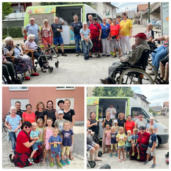 In den Genuss der Erfrischung kamen sowohl die Bewohner als auch die Mitarbeiterinnen und Mitarbeiter des Pflegeheims. Auch das Friseurteam des Figaros, alle Helferinnen und Helfer und auch deren Kinder durften sich eine Kugel Eis holen.