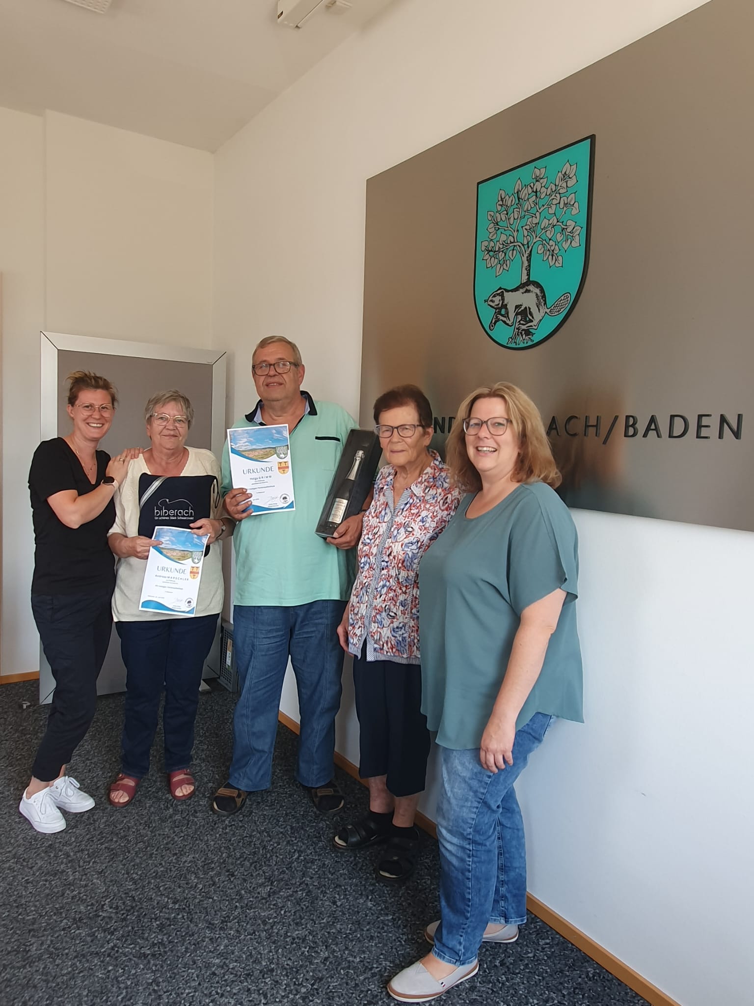 Sandra Armbruster von der Gemeinde Biberach begrüßte die Feriengäste zusammen mit Alexandra und Brunhilde Breig vom Breighof in den Räumen der Gemeinde Biberach und dankte den Ehrengästen mit einer Urkunde und einem Präsent für den 25-jährigen Aufenthalt.