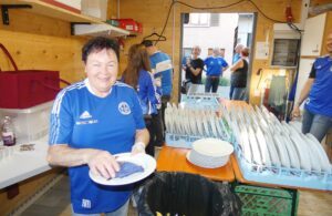 „Als Verein bewirbt man sich für die Tavernenabende“, erzählt der Mann im strahlend blauen Vereinshemd, „aber die Gemeinde hat das Problem, dass sich meist zu wenige Vereine melden.“ Mit dem Ergebnis, dass der mitgliederstarke FVB die Ausrichtung von gleich zwei Tavernenereignissen übernommen hat.