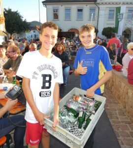40 bis 50 aktive Fußballer mit ihren Frauen und Kindern sorgten für die Bewirtung mit Getränken und deftigen Speisen und überhaupt dafür, dass alles rund lief. „Die Senioren unserer „alten Herren“ haben heute Morgen mit zehn Mann für den Aufbau gesorgt“, berichtete Holger Schilli, „und nachher, ab 23 Uhr, werden die erste und zweite Mannschaft den Abbau machen.“ Zwar bleiben die Häuschen der Bewirtungszeile noch stehen – für die letzten beiden Tavernenabende im August. Sämtliches Inventar aber muss wieder abtransportiert werden, ebenso wie alle Tische und Bänke sowie die Straßenabsperrungen.